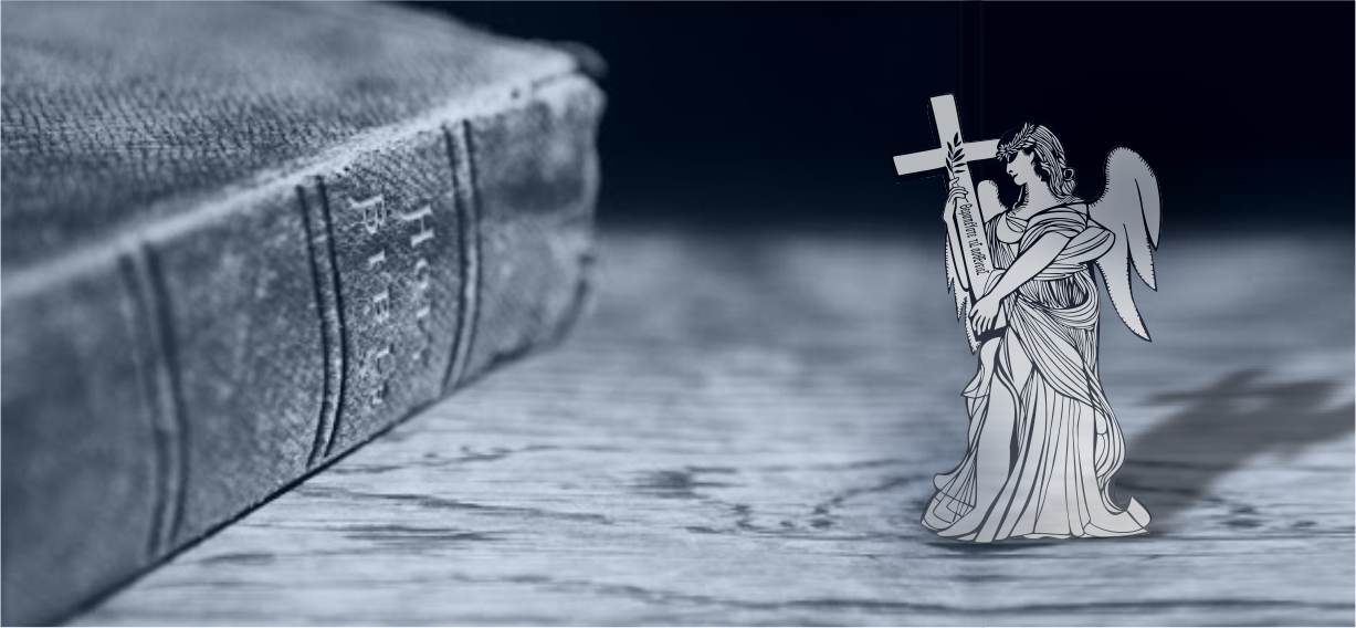 The logo is designed with the Archangel as the core element to symbolize the company's social responsibility. The laurel-crowned Archangel holds a cross and an olive branch which is the symbol of treatment and recovery. The Greek phrase "Θεραπεύστε τις ασθένειες" engraved on the cross is originated from Ezekiel 34:16 (Holy Bible, Old Testament), meaning "bind up the injured, strengthen the weak."