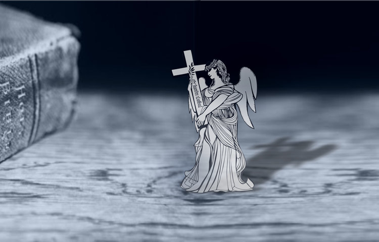 The logo is designed with the Archangel as the core element to symbolize the company's social responsibility. The laurel-crowned Archangel holds a cross and an olive branch which is the symbol of treatment and recovery. The Greek phrase "Θεραπεύστε τις ασθένειες" engraved on the cross is originated from Ezekiel 34:16 (Holy Bible, Old Testament), meaning "bind up the injured, strengthen the weak."